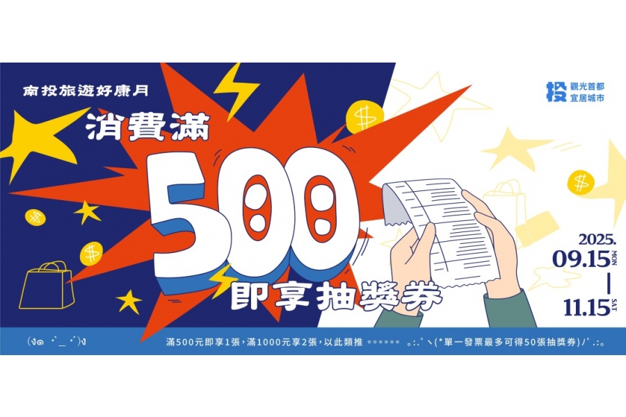 只要在南投合法店家單筆消費滿500元,憑發票或收據就能抽大獎